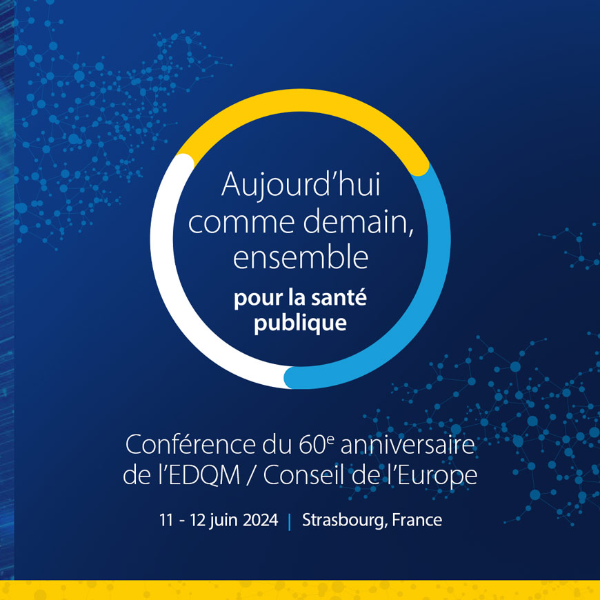 Rendez-vous à l’EDQM pour célébrer 60 ans d’excellence dans le domaine de la protection de la santé publique. Venez écouter des spécialistes de renom et suivre des discussions instructives sur les défis actuels dans le domaine de la santé publique, sur l’avenir de la santé publique et sur le pouvoir de la collaboration. AUJOURD’HUI COMME DEMAIN, ENSEMBLE POUR LA SANTÉ PUBLIQUE (conférence du 60e anniversaire de l’EDQM